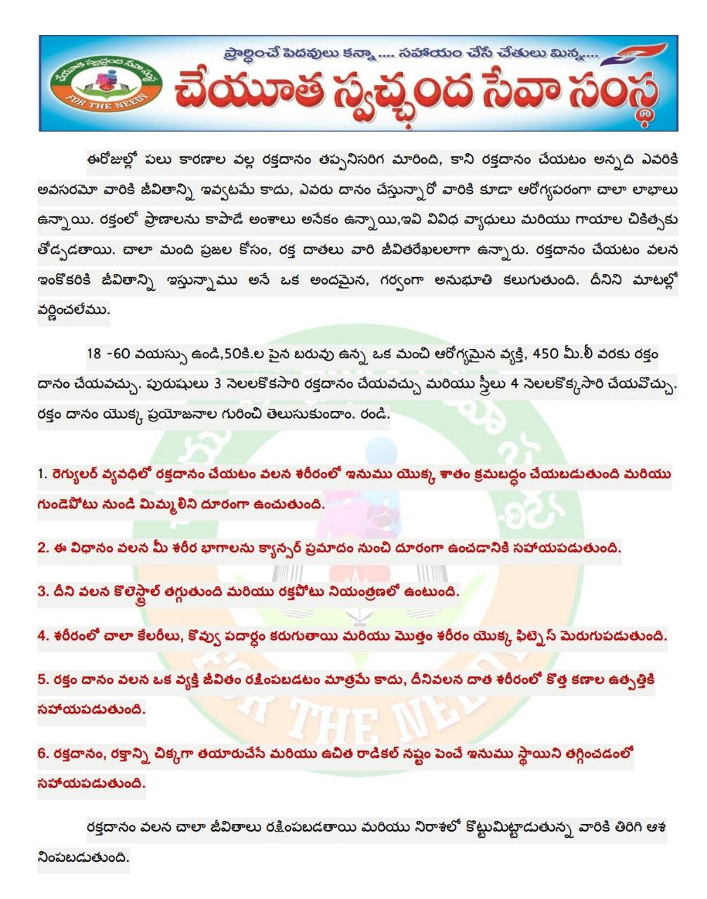 Cheyutha also best in best service donate the blood.Whatever your reason, the need for blood is constant and you will feel good knowing your donation can help save up to 3 lives