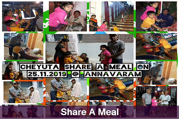 This is about introducing the joy in sharing a meal to the needy around us with our very own hands. It's not about contributing money for the cause but personally spending it and distributing the food amongst the hungry. The pictures are shared in the cheyuta WhatsApp groups.